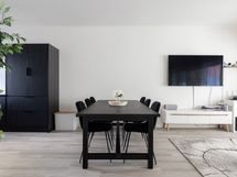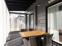 Asunnossa on neljä makuuhuonetta, kaksi erillistä wc:tä sekä näyttävä kylpyhuone jossa sadevesisuihkut ja tunnelmallinen sauna lasiseinällä. Tyylikäs kodinhoitohuone tekee arjen pyykkihuollosta sujuvaa. Olohuone ja avokeittiö muodostavat avaran ja yhtenäisen tilan, jossa perhe ja ystävät viihtyvät yhdessä. Keittiössä kivitasot ja aamiaiskaappi. Olohuoneesta on käynti lasitetulle terassille, joka tuo lisätilaa oleskeluun aikaisesta keväästä pitkälle syksyyn.