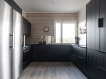 Tyylikkäät ja modernit pinnat saa kodin tuntumaan samalla lämpimältä ja viihtyisältä – upeat hirsiseinät ja laadukkaat keittiökalusteet luovat kodikkaan ja viimeistellyn kokonaisuuden. Asuinmukavuutta lisää ilmalämpöpumppu olohuoneessa.