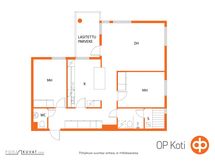 Keittiö: parketti, maali, maali. Olohuone: parketti, tapetti/maali, maali. Makuuhuone 1: laminaatti, tapetti/maali, maali. Makuuhuone 2: laminaatti, tapetti/maali, maali. Sauna: laatta, paneeli, paneeli. Kylpyhuone: laatta, laatta, paneeli. Wc: laatta, laatta, paneeli.