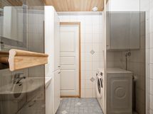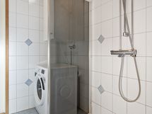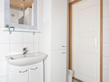 - Kylpyhuone, pesukoneliitäntä, lattialämmitys, kylpyhuonekaapisto, kiinteät valaisimet, suihku, suihkuseinä, sähkösauna, erillinen wc