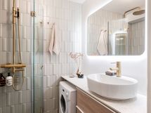 - Suihku, Pesukone, Pesukoneliitäntä, Mukavuuslattialämmitys, Käsisuihku, Kaapisto, Allas, Suihkuseinä, WC-istuin, Peili
