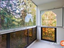 - Parvekkeen näkymät pohjoinen, muut ikkunat luoteeseen. Ikkunoista puistomaiset näkymät ja taloja vieressä.