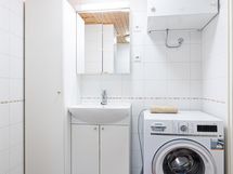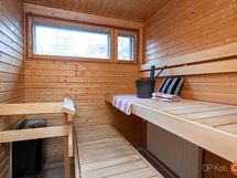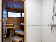 - Sauna, sähkökiuas, kylpyhuone, erillinen wc, suihku, peilit, peilikaappi, kaapit, pesukoneliitäntä, lattialämmitys, kiinteät valaisimet.