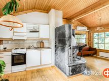 Sähköliesi, liesituuletin, kaapistot, kiinteät valaisimet.