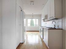 - Keittiön varusteet: Jääkaappipakastin, astianpesukone ja liesituuletin. Liesi: Keraaminen liesi.