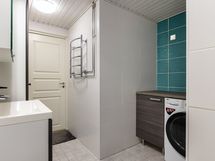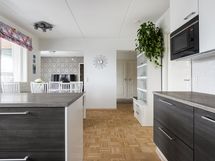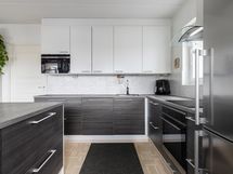 - Keittiön varusteet: Jääkaappipakastin (Gram), erillisuuni (Gram), induktioliesi (Gram), astianpesukone (Gram) ja mikroaaltouuni (Gram). Liesi: Induktioliesi.