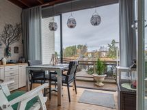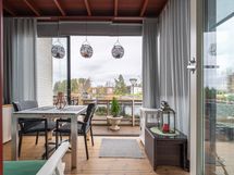 - Osa terassista lasitettu ja osa avointa tilaa.