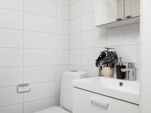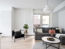 Oma sauna tekee arjesta hieman pehmeämpää, ja huoneistosta huokuu uuden kodin raikkaus ja selkeys. Pohjaratkaisu on käytännöllinen, ja jokainen neliö on otettu tehokkaasti käyttöön ilman turhia kompromisseja.