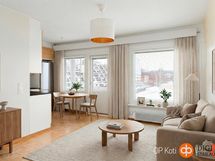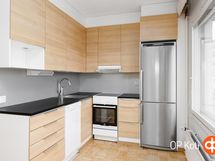 - Jääkaappipakastin, keraaminen liesi, liesituuletin, astianpesukone, kaapistot, kiinteät valaisimet.