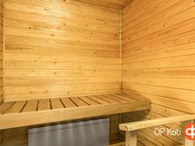 - Sauna, sähkökiuas, kylpyhuone, suihku, peilit, peilikaappi, allaskaappi, pesukoneliitäntä, kiinteät valaisimet.