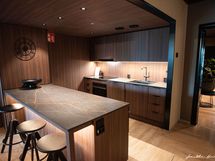 - Integroidut koneet, kiiltävävalkoiset kaapistot, Alucobest välitila, Gunmetal hana, Francke-allas. Avokeittiö. Jääkaappi, pakastin, induktioliesi. Kivitasot.