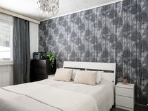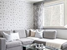 Lattia: Keittiössä: laatta. Pesutiloissa: laatta. Olohuoneessa: vinyyli. Makuuhuoneessa: vinyyli. Seinät: Pesutiloissa: kaakeli.