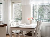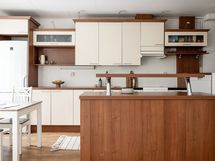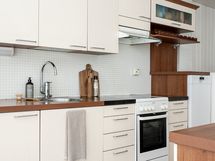 - Liesi: keraaminen. Työtasot: kivi, laminaatti. Kylmäsäilytys: jääkaappi/pakastin. Varustus: liesituuletin, astianpesukone.
