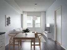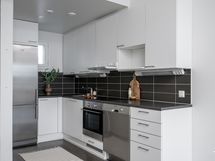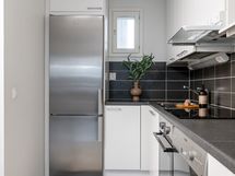 Olohuoneesta on suora käynti huoneistonlevyiselle terassille ja takapihalle, mikä tuo rivitalomaista asumisen tuntua ja lisää käyttötilaa erityisesti kesäaikaan. Keittiö on selkeälinjainen ja varustettu rosterisilla kodinkoneilla. Oma sauna viimeistelee kokonaisuuden ja lisää asunnon houkuttelevuutta niin omassa käytössä kuin vuokrauksessa. Tämä koti on järkevä valinta kun etsit toimivaa ja vaivatonta kotia tai sijoituskohdetta uudehkosta taloyhtiöstä.
