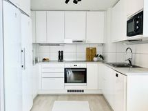 - Laminaattitasot, Astianpesukone, Induktioliesi, Liesikupu, Jääkaappi, Pakastin, Erillisuuni.