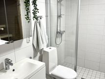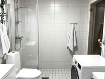 - Suihku, Suihkuseinä, Pesukonevalmius, Peilikaappi, Allaskaappi