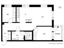 Pinta-alan peruste: Yhtiöjärjestyksen mukainen ja isännöitsijäntodistuksen mukainen. Ei tarkistusmitattu. Pinta-ala voi siis olla edellä mainittua pienempi tai suurempi.