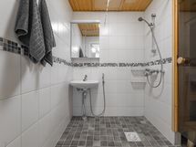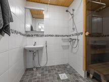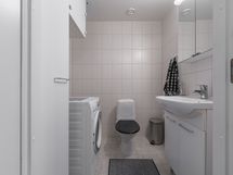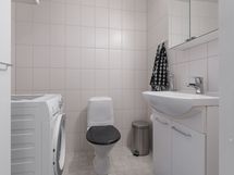 - Pesutilojen varusteet: Lattialämmitys, peilikaappi, pesuallas ja suihku. Erillisten WC:n lukumäärä: 1. Erillisen WC:n varusteet: WC-istuin, pesukoneliitäntä, peilikaappi, bidee-suihku, allaskaappi, lattialämmitys, lattiakaivo ja pesuallas. Erillisen WC:n kuvaus: Tilava WC, Samassa tilassa kodinhoitototilaa, pesukoneliitäntä, ilmanvaihtokone.