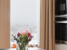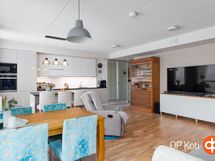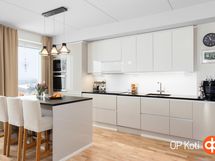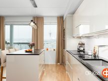 - Jääkaappipakastin kalusteintegroitu, erillisuuni, induktioliesi liesitaso, liesituuletin, mikroaaltouuni kalusteintegroitu, astianpesukone hankittu v. 2024 (hiljainen), kalusteintegroitu, kaapistot. Alakaapistot ja pystykaapit (kiilto kashmir ) / yläkaapit (kiilto valk), irralliset saarekkeet eittiössä saareke 190 x 144 cm musta laminaattilevy (Laatikostot toisella puolella ja istumapaikat toisella, kiinteät valaisimet. Tasot kivitasot. Erillisuuni työtasoon korotettu. Keittiöhana Tapwell SK887 - ulosvedettävällä päällä ja suihkutoiminnolla.