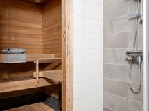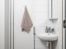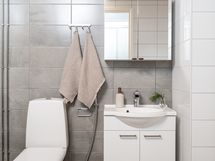 - Varustus: pesukoneliitäntä, lattialämmitys, wc-istuin, suihku, peili, kiinteät valaisimet, kylpyhuonekaapisto. Varustus: peilikaappi, bidee-suihku.