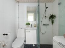- Varusteet: suihkuseinä, pesukoneliitäntä, WC, suihku, peilikaappi. Kylpyhuone uusittu kokonaisuudessaan 04-06/2023