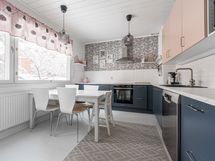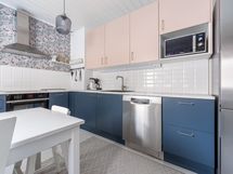 - Keittiön varusteet: Jääkaappi, astianpesukone, erillisuuni ja erillinen pakastin. Liesi: Induktioliesi. Työtason materiaali: Laminaatti. Uusittu 2025, Epog-keittökalusteet.