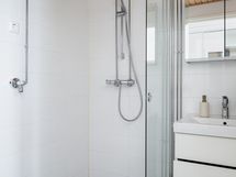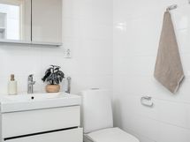 - Varustus: suihkuseinä, pesukoneliitäntä, lattialämmitys, wc-istuin, suihku, peilikaappi, kiinteät valaisimet.
