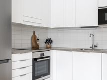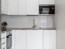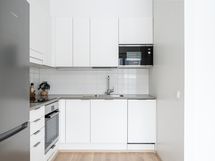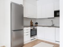 - Liesi: induktio, erillisuuni. Työtasot: laminaatti. Kylmäsäilytys: jääkaappi/pakastin. Varustus: liesituuletin, astianpesukone, kiinteät valaisimet.