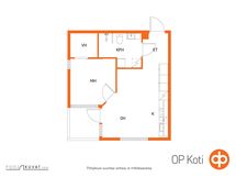 Keittiö: laminaatti, seinät maali. Olohuone: laminaatti, seinät maali. Makuuhuone 1: laminaatti, seinät maali. Kylpyhuone: laatoitettu. Eteinen: laminaatti, seinät maali.
