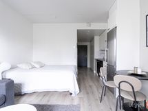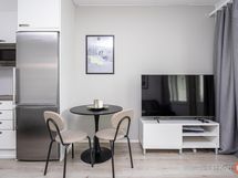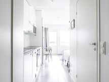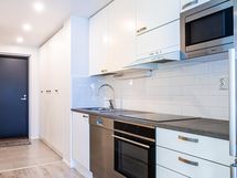 - Jääkaappipakastin, keraaminen liesi, liesituuletin, mikroaaltouuni, astianpesukone, kaapistot, kiinteät valaisimet.