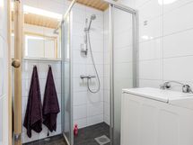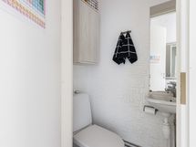 Pesutilojen varusteet: Suihku, suihkukaappi, pesukoneliitäntä ja peilikaappi. Erillisten WC:n lukumäärä: 1. Erillisen WC:n varusteet: WC-istuin, peili ja pesuallas.