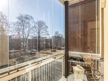 Parvekkeen tyyppi: Ulostyönnetty parveke ja lasitettu. Parvekkeen suunta: Kaakko.