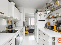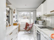 - Jääkaappipakastin, keraaminen liesi, liesituuletin, astianpesukone, kaapistot, kiinteät valaisimet.