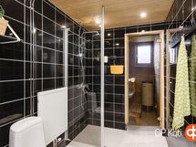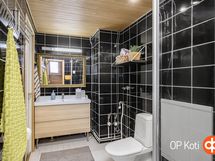 - Sauna, sähkökiuas, kylpyhuone, erillinen wc, suihku, suihkuseinä, peilit, peilikaappi, kaapit, allaskaappi, pesukoneliitäntä, kiinteät valaisimet.