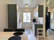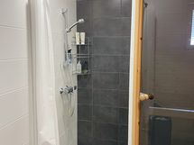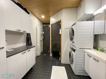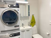Varustus: pesukoneliitäntä, lattialämmitys, wc-istuin, suihku, peilikaappi, kiinteät valaisimet, kylpyhuonekaapisto.