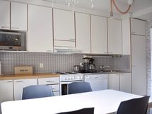- Keittiön varusteet: Jääkaappipakastin, uuni, liesi, liesituuletin ja astianpesukone. Liesi: Valurautaliesi. Työtason materiaali: Laminaatti. Välitilan laatoitus uusittu 2019. Liesituuletin ja hana vaihdettu 2020. Jääkaappi uusittu 2021.