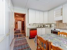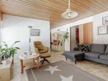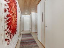 Keittiö: Muovimatto / maali. Olohuone: Muovimatto / kangastapetti. Makuuhuone 1: Laminaatti / tapetti. Makuuhuone 2: Laminaatti / tapetti. Makuuhuone 3: Muovimatto / tapetti. Sauna: Laatta / paneeli. Kylpyhuone: Laatta / laatta. Eteinen: Muovimatto / maali. Wc: Muovimatto / muovitapetti.