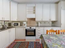 Jääkaappipakastin, keraaminen liesi, liesituuletin hormi, astianpesukone, arkkupakastin.