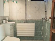 Suihku, Pesukonevalmius, Peilikaappi, Allaskaappi, Laattalattia, Laattaseinä, Avattava ikkuna