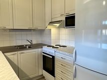 - Liesi: sähköliesi. Työtasot: laminaatti. Kylmäsäilytys: jääkaappi/pakastin. Varustus: liesituuletin, mikroaaltouuni, kiinteät valaisimet.