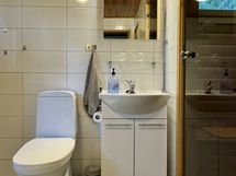 Varustus: pesukoneliitäntä, wc-istuin, suihku, peili, kiinteät valaisimet, kylpyhuonekaapisto. Varustus: bidee-suihku.