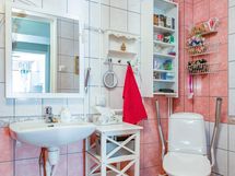 - Sauna, sähkökiuas, kylpyhuone, erillinen wc 3 x wc, jokaisessa suihku, suihku, peilit, kaapit, allaskaappi pienimmässä wc:ssä allaskaappi, pesukoneliitäntä, kiinteät valaisimet. Sauna ja kylpyhuone remontoitu n. 2 vuotta sitten. Kahdessa wc:ssä sähkötoiminen lattialämmitys, yhdessä wc:ssä ja kylpyhuoneessa kaukolämpöputket lattiassa.