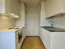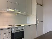 - Liesi: sähköliesi. Työtasot: laminaatti, metalli. Kylmäsäilytys: jääkaappi/pakastin. Varustus: kiinteät valaisimet, liesituuletin / hormi.
