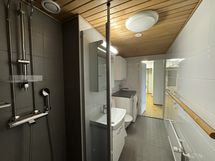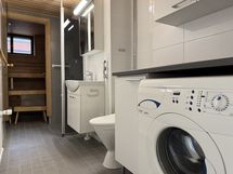 - Varustus: suihkuseinä, pesukone, pesukoneliitäntä, lattialämmitys, wc-istuin, suihku, peilikaappi, kiinteät valaisimet, kylpyhuonekaapisto.