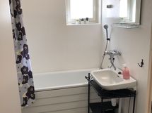 - Kylpyamme, Suihku, Pesukonevalmius, Allaskaappi, Avattava ikkuna