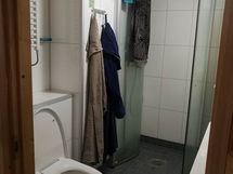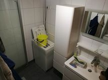 - Suihku, Suihkuseinä, Pesukonevalmius, Allaskaappi, Laattalattia, Laattaseinä, Lattialämmitys