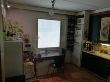 - Suuri tiskipöytä, Paljon työskentelytilaa, Paljon kaappitilaa, Tilaa isolle ruokapöydälle, Laminaattitasot, Terästasot, Astianpesukone, Pesukoneliitos, Sähköliesi, Jää-pakastinkaappi