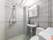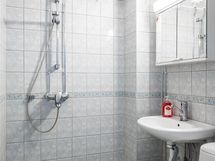 Kylpyhuone, suihku, peilikaappi, pesukoneliitäntä.