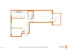 Keittiö: letonipinnoite. Kylpyhuone: Laatoitettu. Asuintilat: Saarniparketti/laminaatti.