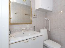 - Sähkösauna, kylpyhuone, amme, suihku, erillinen wc 2kpl, peilikaappi, pesukoneliitäntä, lattialämmitys, kylpyhuonekaapisto, kiinteät valaisimet